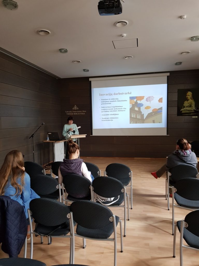Bibliotekininkų kultūriniam pasirengimui projekte skirtas ypatingas dėmesys. Gegužės 13 d. vykusio užsiėmimo metu projekto „Tarptautinė patirtis novatoriškoms bibliotekų idėjoms 2“  administravimo grupės narė, atsakinga už ryšius su užsienio bibliotekomis Virginija Švedienė supažindino bibliotekos darbuotojas su Nyderlandų bibliotekų sistema, pagrindinėmis šios šalies bibliotekų šiandienos aktualijomis ir vizijomis. Darbo stebėjimo vizito dalyvėms buvo pristatyta Amsterdamo viešoji biblioteka, jos paslaugos. Papasakota apie bibliotekos ypatingą dėmesį mokymosi visą gyvenimą skatinimui, išskirtines veiklas, skirtas suaugusiems bibliotekos lankytojams.