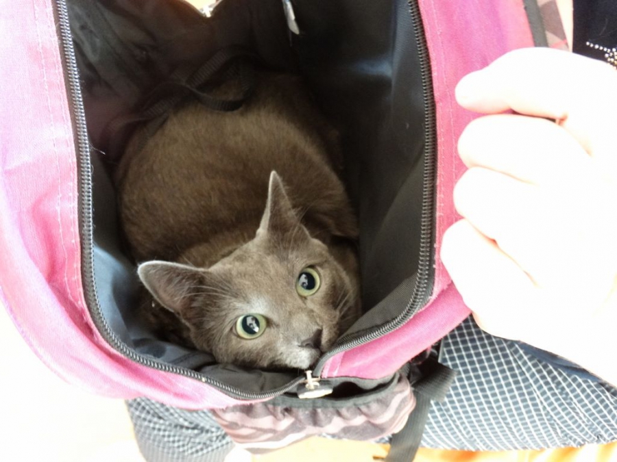 Goda atėjo su katyte Puma, kuri buvo jaukiai įsitaisiusi mamos glėbyje laikomoje kuprinėje. Ji jautėsi nedrąsiai, bet susipažinusi su aplinka ir smalsiais vaikais mielai pozavo užsiropštusi šeimininkei ant pečių.