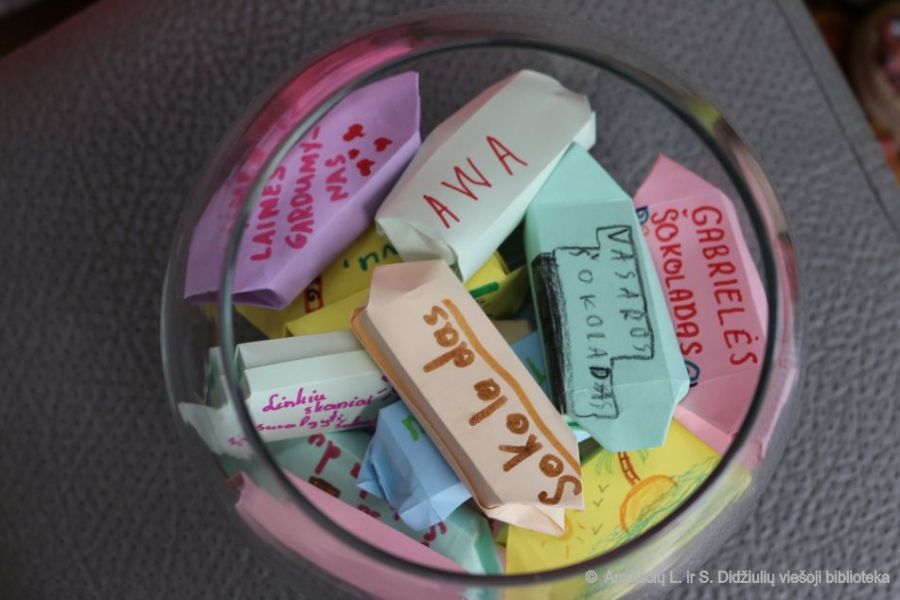 Smagiai besišnekučiuodami vaikai susipažino su trumpa šokolado istorija, išvardino šokolado rūšis ir kartu su bibliotekininkėmis išsiaiškino iš ko jis gaminamas, kur daugiausia užauginama kakavos. Susirinkusiems šokolado mėgėjams bibliotekininkės pristatė „šokoladines“ knygas, iš kurių buvo perskaityta viena smagi ir šmaikšti „šokoladinė“ istorija. Po to visi vaikai virto šokoladinių saldainių pakavimo meistrais, kuriuos patys dekoravo, o po šio malonaus saldainių popierėlių dekoravimo proceso vaišinosi vienas kito vasariniais linkėjimais papuoštais saldainiais ir ragavo karštą šokoladą.