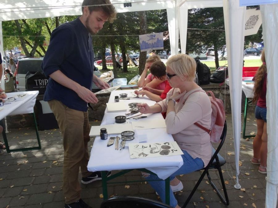Zarasietė grafikė, dailininkė Rasa Vasilevičiūtė vedė atspaudo gimimo dirbtuves. Jose cinkografijos klišėmis dailininko Algirdo Steponavičiaus iliustracijų tautosakininko Leonardo Saukos sudarytai knygelei vaikams atspaudus spaudė vaikai ir suaugusieji. Jie išgirdo, kad cinkografija kilusi iš Prancūzijos ir kaip grafikos technika pradėta taikyti XXa. pradžioje. Atspaustą iliustraciją mažieji dalyviai nusispalvino.