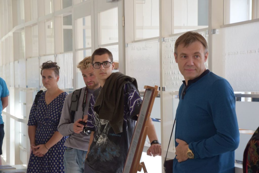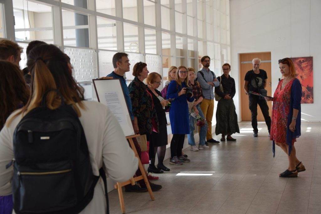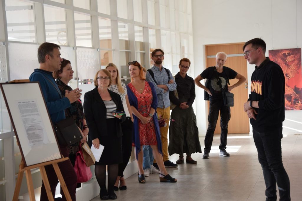 Parodos „sadug“ atidarymo svečiai sveikino autorių, gilinosi į jo kūrybą, bendravo. Paskui gausus bičiulių, kolegų, bendradarbių, dailės mylėtojų būrys patraukė į Juozo Miltinio dramos teatrą, kur eksponuojami kiti menininko darbai, tarsi pratęsiantys bibliotekoje vykstančią parodą.