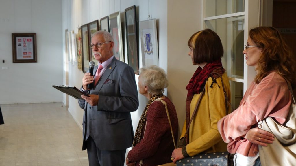 „Mano veiklos heraldikoje pradžioje viskas buvo piešiama ranka. Simbolių paieška, jų variantai ir koregavimai užimdavo daug laiko ir vargino akis. Atsiradus kompiuteriams, darbas esmingai palengvėjo. Atsirado daugiau galimybių vaizdo išbaigtumui ir jo praktinio panaudojimo galimybėms. Parodoje eksponuojami trijų sričių heraldikos objektai: valstybės, savivaldos ir personalinės heraldikos, kuri sudaryta iš kilmingųjų ir šeimų herbų. Didelė dalis objektų skaitmeniniai, kiti – originalai, atlikti tušu, akvarele, guašu ar tempera. Taip pat eksponuojami kai kurie variantai, netapę etalonais“, – kalbėjo parodos autorius.