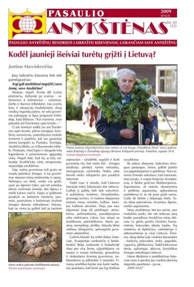 Pasaulio anykštėnų bendrijos laikraštis ,,Pasaulio anykštėnas”