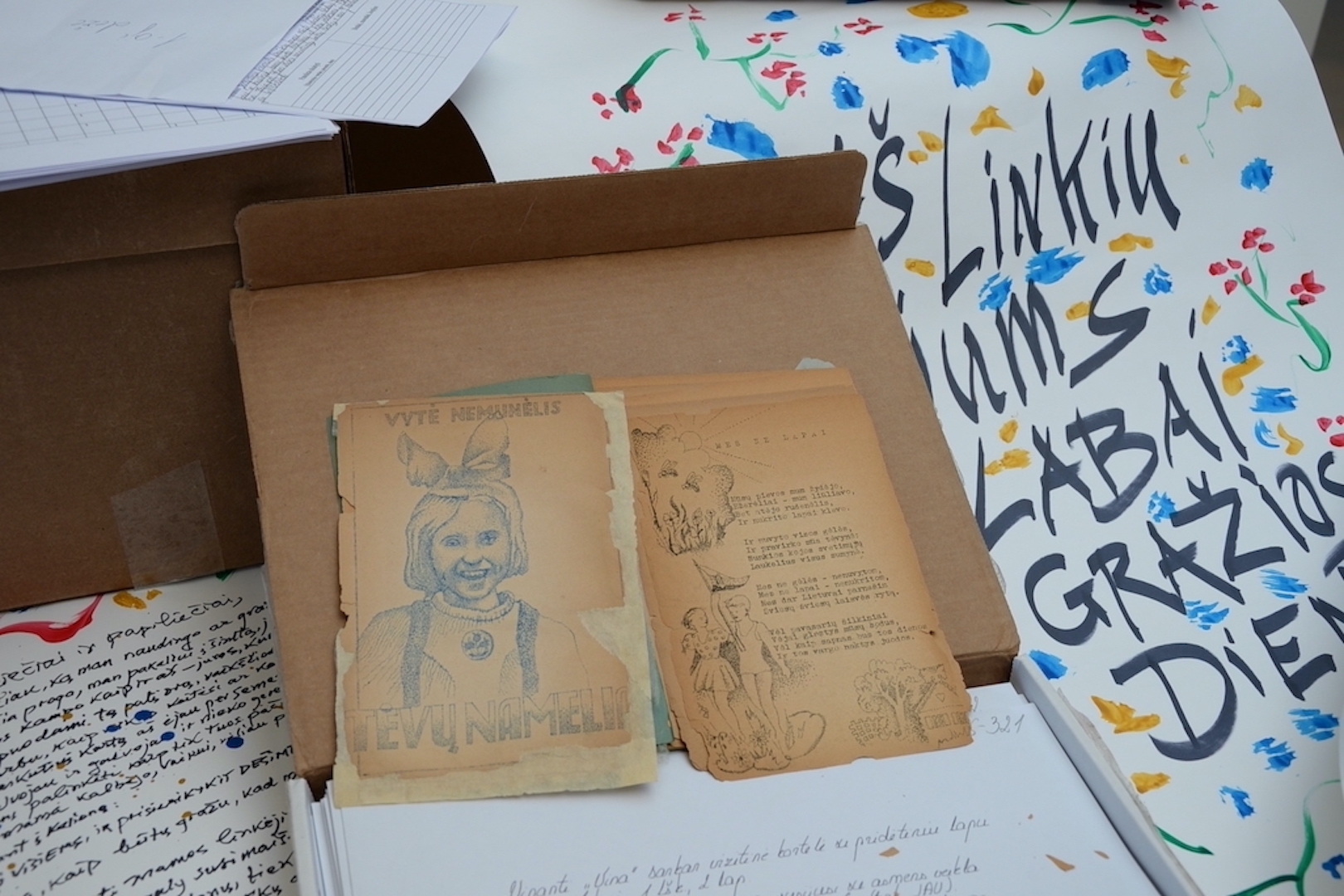 Tarp gautų dokumentų gausu laiškų ir sveikinimo atvirukų, kuriuos rašė įvairūs žymūs Lietuvos žmonės. Radome Vytauto V. Landsbergio, Vlado Dautarto, Algimanto Maceinos, Česlovo Kudabos, Jono Vaitkaus, Sigutės Trimakaitės-Kunčienės, Henriko Šablevičiaus, Icchoko Mero, Skirmanto Valiulio menininkui adresuotos korespondencijos. Ypatingai nudžiugino, kad aptikome ir mūsų kolegės, poetės Elvyros Pažemeckaitės sveikinimo atviruką ir laišką, rašytą J. Mekui.