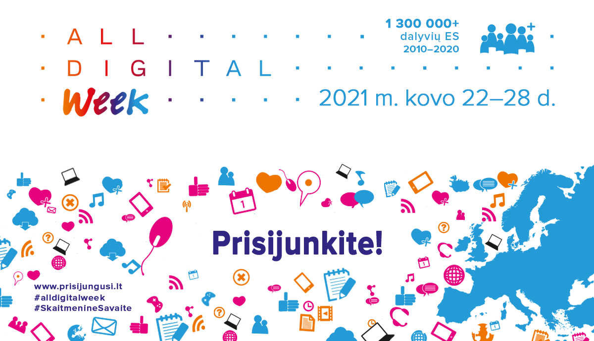 „SKAITMENINĖ SAVAITĖ 2021″ TEMA – SKAITMENINIUS ĮGŪDŽIUS UGDOME MOKYDAMIESI VISĄ GYVENIMĄ
