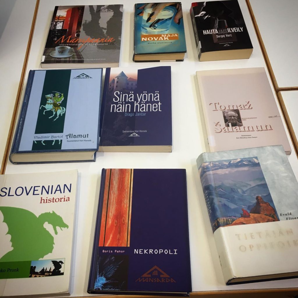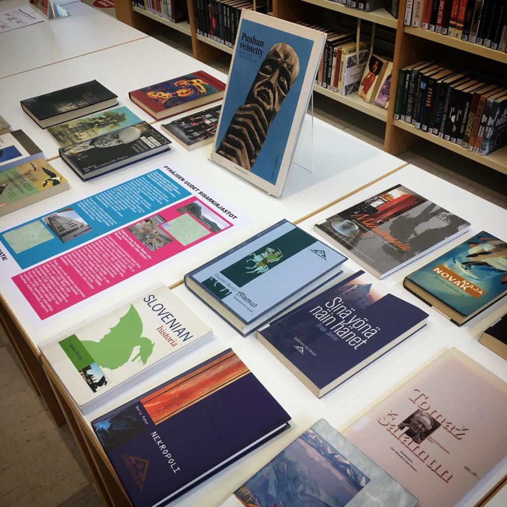 Birželio pradžioje suomių kolegos pasidalino žinia apie tai, kad jie savo bibliotekoje surengė leidinių parodą, kurioje eksponuojamos knygos apie Lietuvą ir Slovėniją. Šios šalys pasirinktos neatsitiktinai, nes Pyhäjoki savivaldybės biblioteka Europos viešųjų bibliotekų bendradarbiavimo programoje (NAPLE Sister Libraries program) bendradarbiauja ne tik su Gabrielės Petkevičaitės-Bitės viešąja biblioteka Lietuvoje, bet ir su Škofja Lokos miesto Ivano Tavčaro biblioteka Slovėnijoje. Įdomu tai, jog Škofja Lokos miesto biblioteka nuo 2015 m. NAPLE Sister Libraries programoje sėkmingai bendradarbiauja su Panevėžio rajono savivaldybės biblioteka.