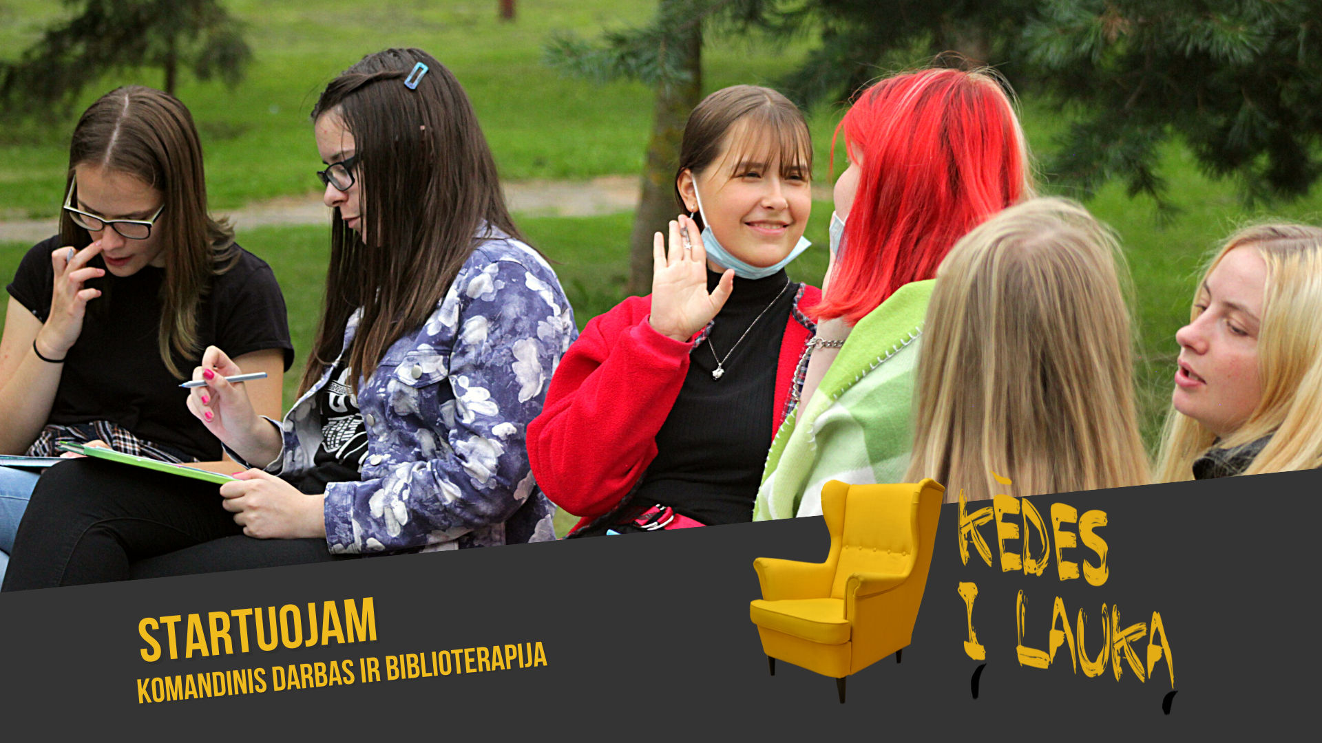 „Kėdes į lauką“ – tradicija tapusi kūrybiškumo ir biblioterapijos vasaros stovykla, skirta 14–29 m. jaunimui. Net 12 dienų trunkantis užsiėmimų ciklas skatins pažinti meno terapiją, lavinti kūrybiškumą, susirasti draugų ir įgyti įgūdžių meninėse veiklose. Pirmąją stovyklos dieną skirsime susipažinimams, susitarimams, lūkesčiams, komandinio darbo rungtims ir, žinoma, biblioterapijai.