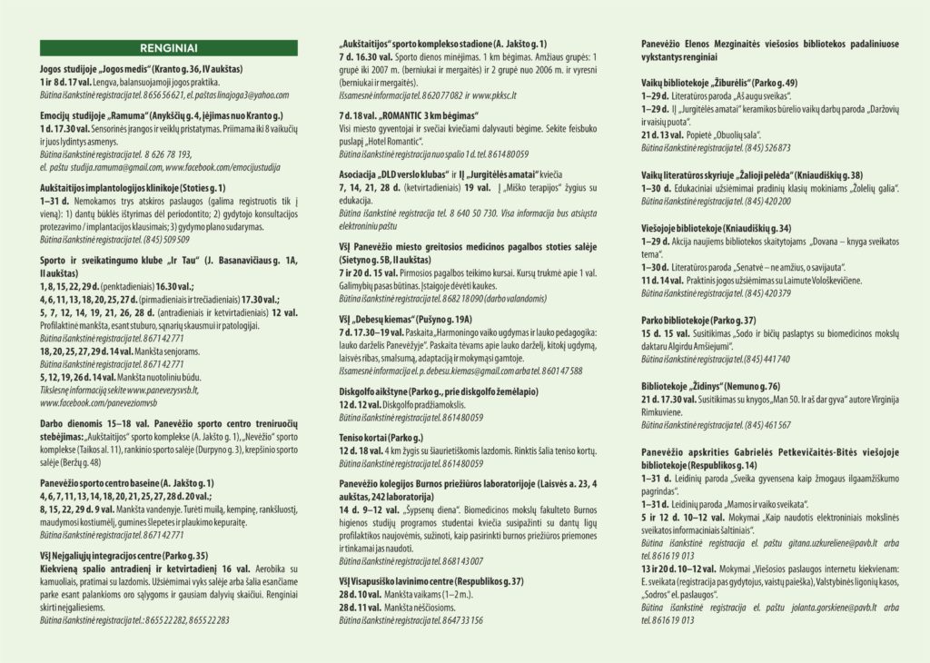 Tikslesnę informaciją sekite www.panevezysvsb.lt,