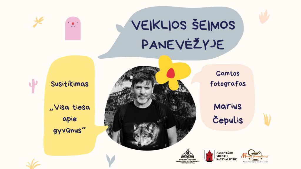 Spalio 7 d. 17.30 val. bibliotekos konferencijų salėje vyks projekto „Veiklios šeimos Panevėžyje“ renginys – Mariaus Čepulio knygos „Visa tiesa apie gyvūnus“ pristatymas. Ši išsami ir kartu šmaikšti knyga leis pažinti mus supantį stebuklingą gamtos pasaulį, o autorius atsakys į mažiems ir dideliems kylančius klausimus apie gyvūnų ypatumus, elgesį ir kita.