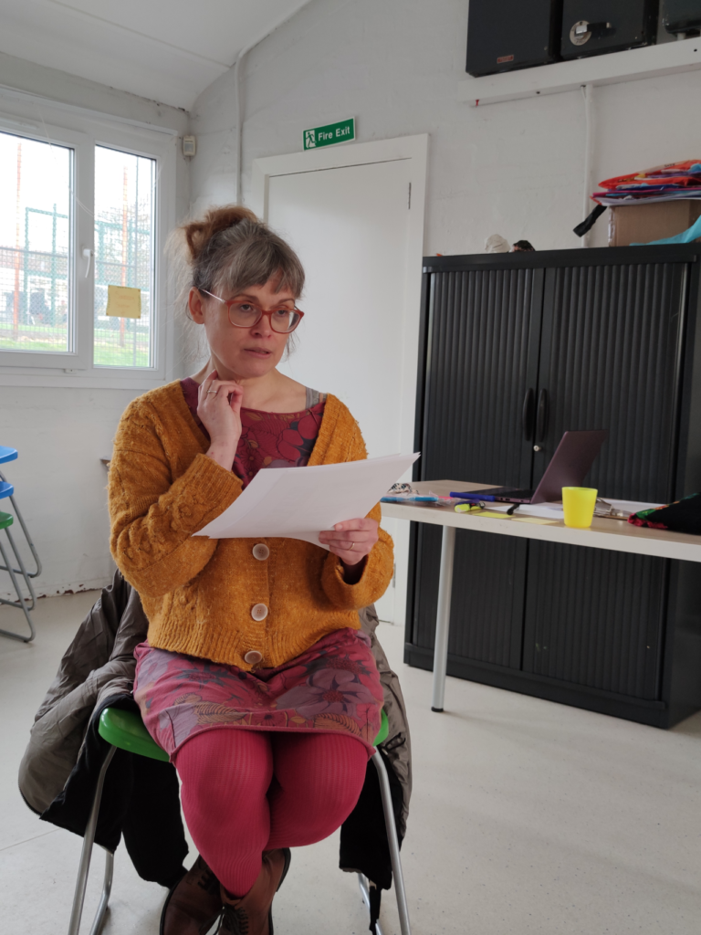 Pasakotoja Daiva Ivanauskaitė mielai pasidalino ir savo pačios istorija – kaip ji atrado pasakojimą ir suprato, jog tai jos gyvenimo kelias ir širdžiai miela veikla. Mokymų dalyvės turėjo progą išgirsti Daivos pasakojamą istoriją apie Škotijos kilmę.