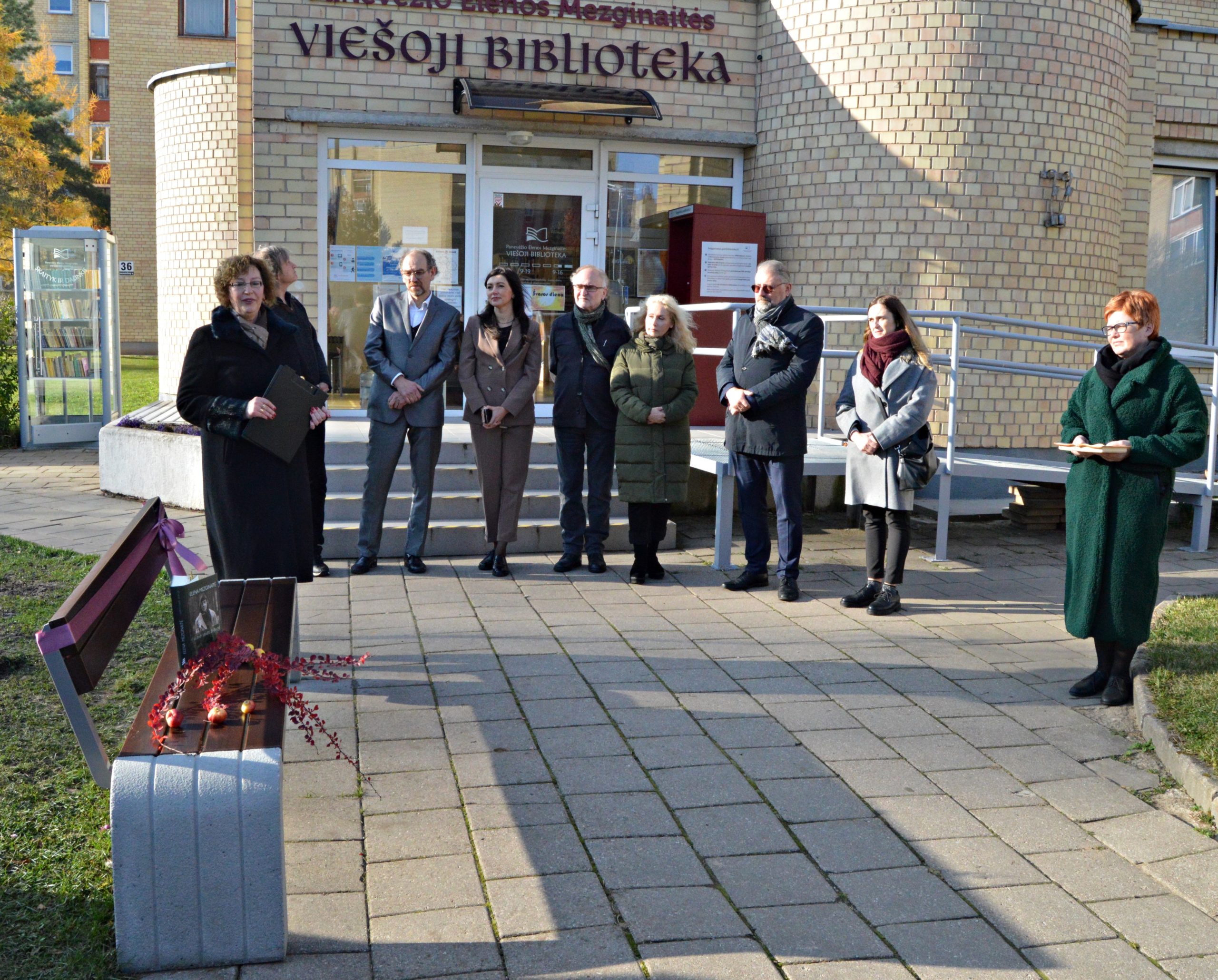 Spalio 31-ąją panevėžietė poetė Elena Mezginaitė būtų šventusi 80-ąjį jubiliejų. Šiai progai paminėti ir įamžinti poetės nuopelnus šalia Panevėžio Elenos Mezginaitės viešosios bibliotekos buvo pastatytas suolelis. Jame įmontuota speciali įranga, leidžianti kiekvienam prisėdusiam paklausyti poetės eilių. Net septyniolika eilėraščių įgarsino Panevėžio Juozo Miltinio dramos teatro aktorė Ligita Kondrotaitė. Pasak bibliotekos direktorės Loretos Breskienės, suoliukas parinktas pagal Elenos Mezginaitės asmenybę – kuklus, paprastas, tačiau ypatingas – tai pirmasis toks suoliukas Panevėžyje. Tikimasi, kad jis bus graži prisėdimo vieta visiems panevėžiečiams.