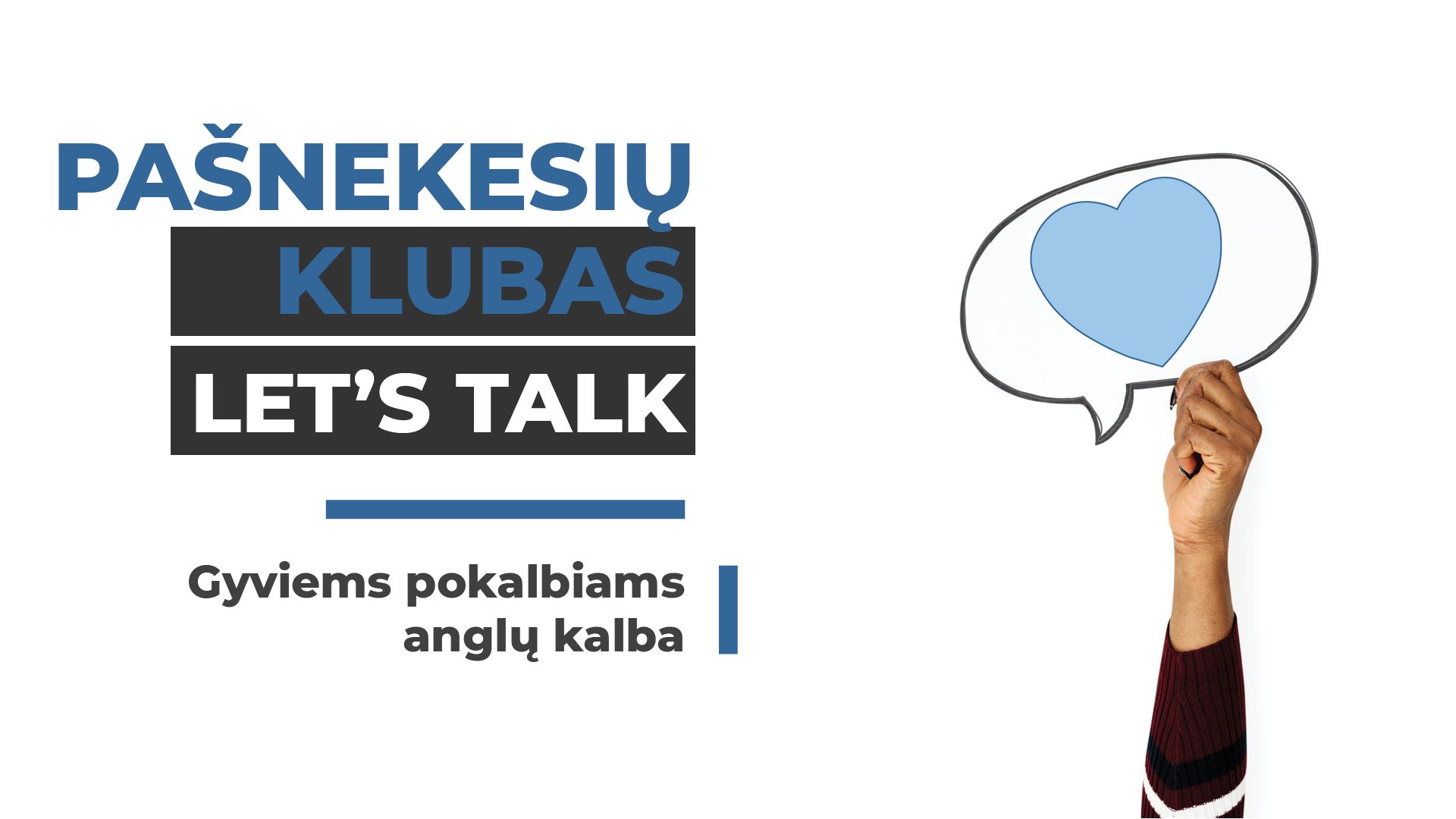 Angliškų pašnekesių klubas „Let‘s talk“ susitinka gyvai kiekvieną trečiadienį 17.15 val. Bendruomenės erdvėje. Nuotoliniai susitikimai – trečiadieniais 12 val. ir ketvirtadieniais 17.15 val.