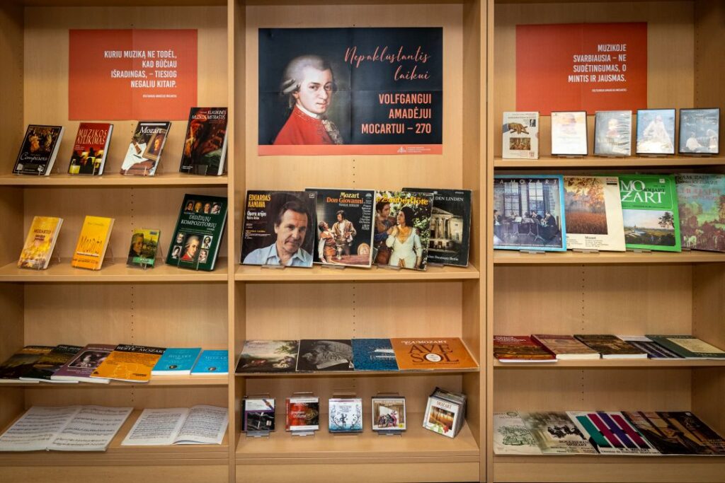 Bibliotekos erdvėse eksponuojama paroda „Nepaklūstantis laikui“ kompozitoriaus Volfgango Amadėjaus Mocarto 270-mečiui paminėti