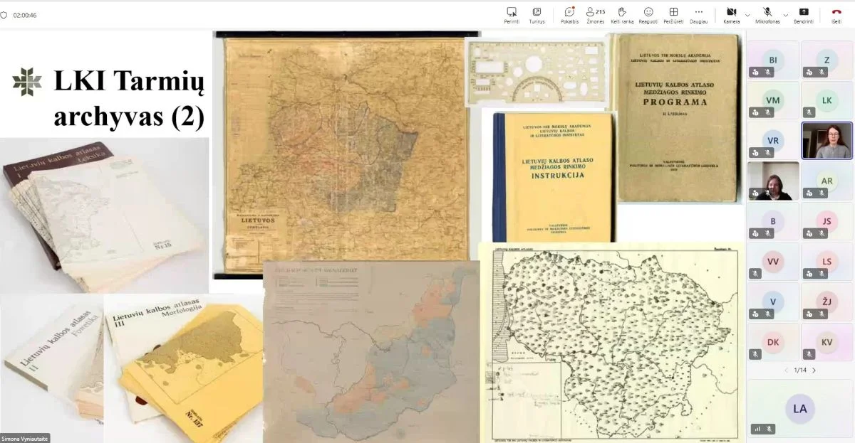 Lietuvių kalbos instituto atstovė Simona Vyniautaitė supažindino su Tarmių archyvu, garso įrašų duomenų baze bei geografinių informacinių sistemų taikymu. „Tarmynas“ leidžia ne tik kaupti ir analizuoti duomenis, bet ir juos matyti interaktyviuose žemėlapiuose, prognozuoti tarmių santykį, stebėti kalbos kaitą. Pristatyti ir šiuolaikiniai įrankiai – programėlės, automatizuota duomenų patikra realiuoju laiku, padedantys efektyviau rinkti ir tvarkyti medžiagą.