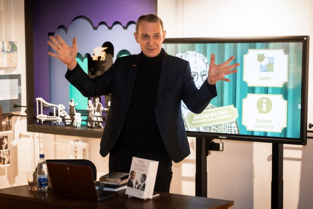 „Sąjūdis ir kas iš jo liko, arba teatro reikšmė Sąjūdžiui“. Tokia tema kalbėta Juozo Miltinio memorialiniame bute, kur susitikimą su moksleiviais organizavo filosofas Arvydas Juozaitis.