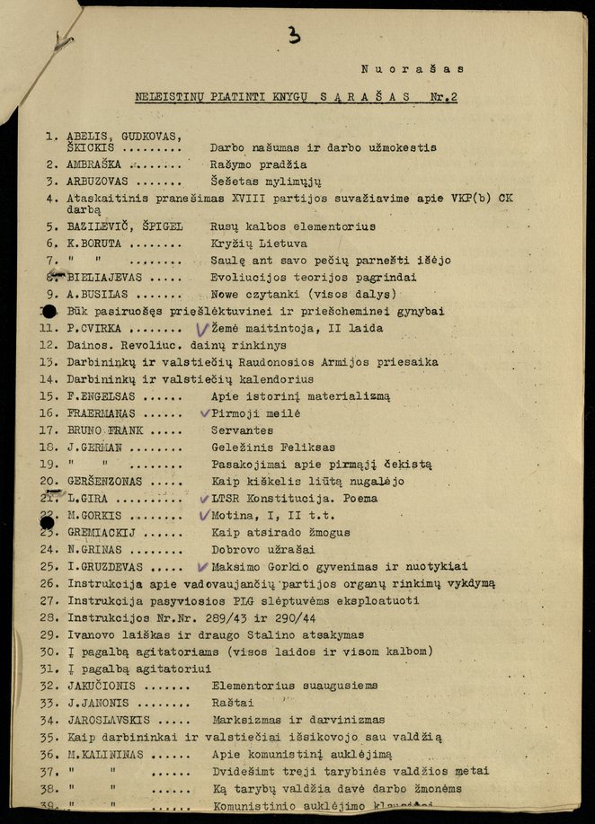 Nuotraukoje:Draudžiamos literatūros sąrašo fragmentas
