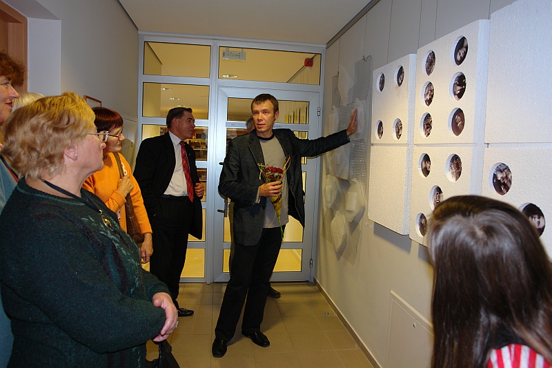 Nuotraukoje: Panevėžio kolegijos dėstytojas Sigitas Laurinavičius pristato parodą. Foto V. Benašo