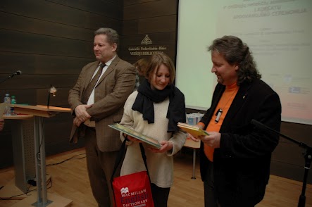 Nuotraukoje: 2012 metų konkurso I vietos laimėtoją Rūtą Jankevičiūtę sveikina Užsienio reikalų viceministras Evaldas Ignatavičius (kairėje) ir J. Urbšio visuomeninės minties ir kultūros centro vadovas Arnoldas Simėnas. Foto V. Benašo