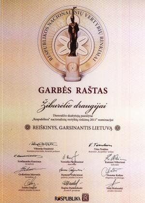 Konkurso „Respublikos“ nacionalinė vertybė 2011“ apdovanojimų vakare dalyvavusi bibliotekos direktorė Rima Maselytė į biblioteką parvežė garbės raštą moksleivių šalpos draugijai „Žiburėlis“, kurio viena iš steigėjų buvo G. Petkevičaitė-Bitė. Draugija konkurse nominuota kaip „Reiškinys, garsinantis Lietuvą“.