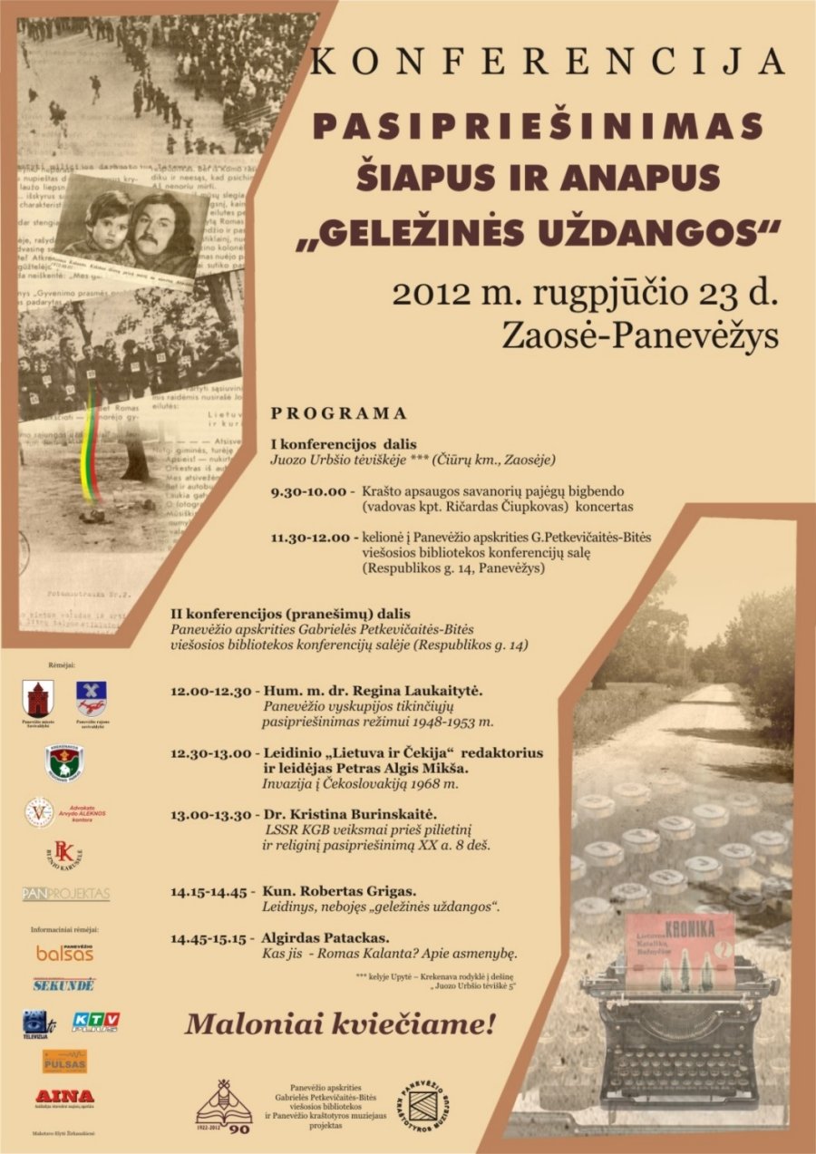 Biblioteka ir Panevėžio kraštotyros muziejus organizavo konferenciją „Pasipriešinimas šiapus ir anapus „geležinės uždangos“. Išleista konferencijos pranešimų medžiaga. (Pasipriešinimas šiapus ir anapus „geležinės uždangos“ : [konferencijos, vykusios 2012 metų rugpjūčio 23 dieną Juozo Urbšio tėviškėje Čiūrų kaime ir Panevėžio G. Petkevičaitės-Bitės viešojoje bibliotekoje, perskaitytų pranešimų rinktinė]. Panevėžys, 2012. 79 p.)