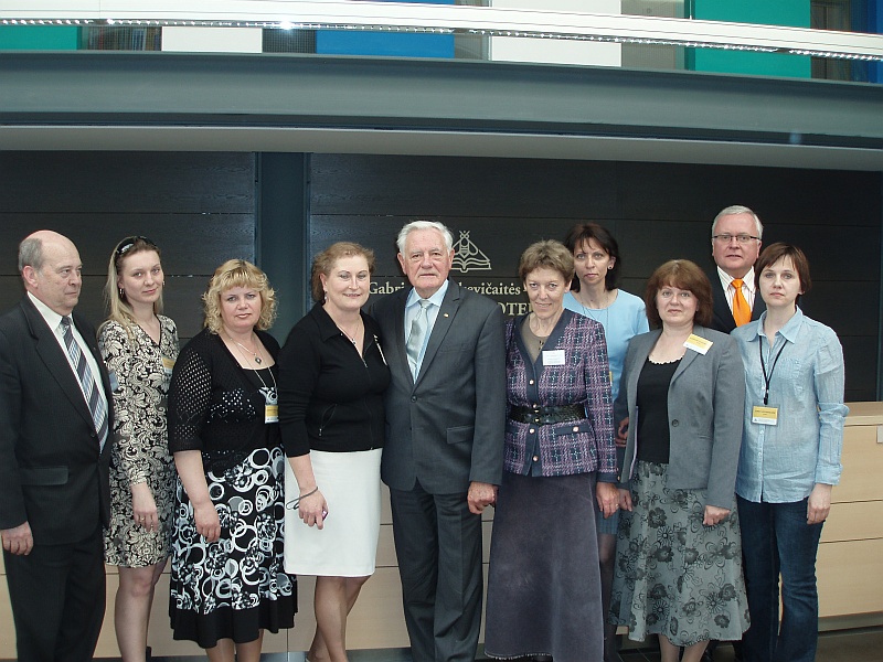 Nuotraukoje: Prezidentas Valdas Adamkus ir Panevėžio miesto tarybos narys Gintaras Šileikis su bibliotekos darbuotojais. Foto A. Dalindos