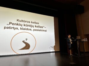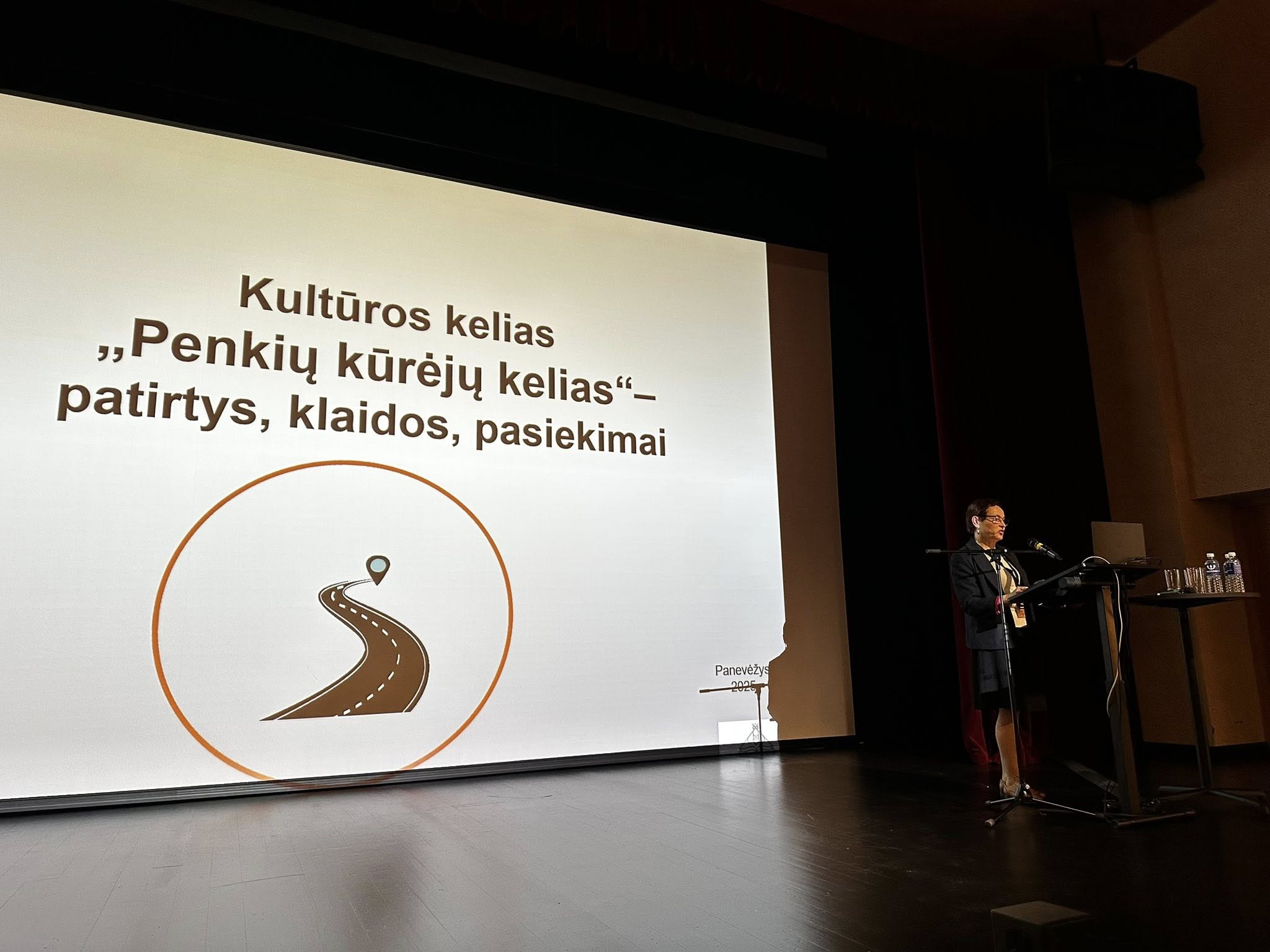 Šilutės kultūros centre vykusioje konferencijoje „Kultūros kelių istorijos: patirtys, iššūkiai ir ateitis“ Juozo Miltinio memorialinio buto vyriausioji bibliotekininkė Angelė Mikelinskaitė skaitė pranešimą „Kultūros kelias „Penkių kūrėjų kelias“ patirtys, klaidos, pasiekimai.“