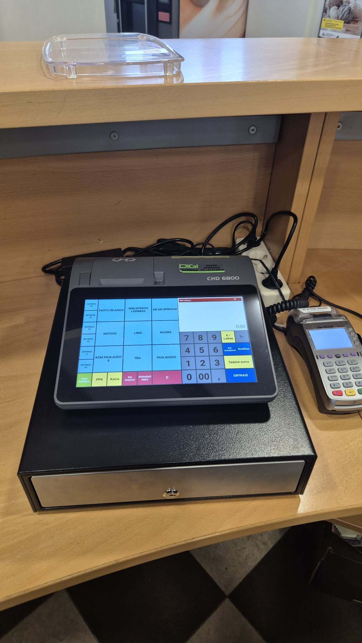 Biblioteka, vykdydama Valstybinės mokesčių inspekcijos prie Lietuvos Respublikos finansų ministerijos 2022 m. balandžio 27 d. įsakymą „Dėl kasos aparatų techninių reikalavimų aprašo patvirtinimo“, įsigijo 2 naujus kasos aparatus CHD 6800A, atitinkančius techninių reikalavimų aprašo nuostatus.