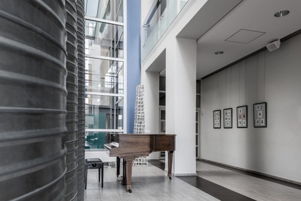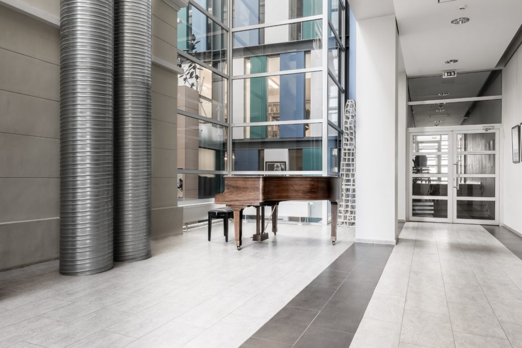 Koncertų erdvė (90 kv. m.) su fortepijonu. Telpa 40 žmonių. 1 val. – 25, 00 Eur. 1 darbo diena – 140 Eur.